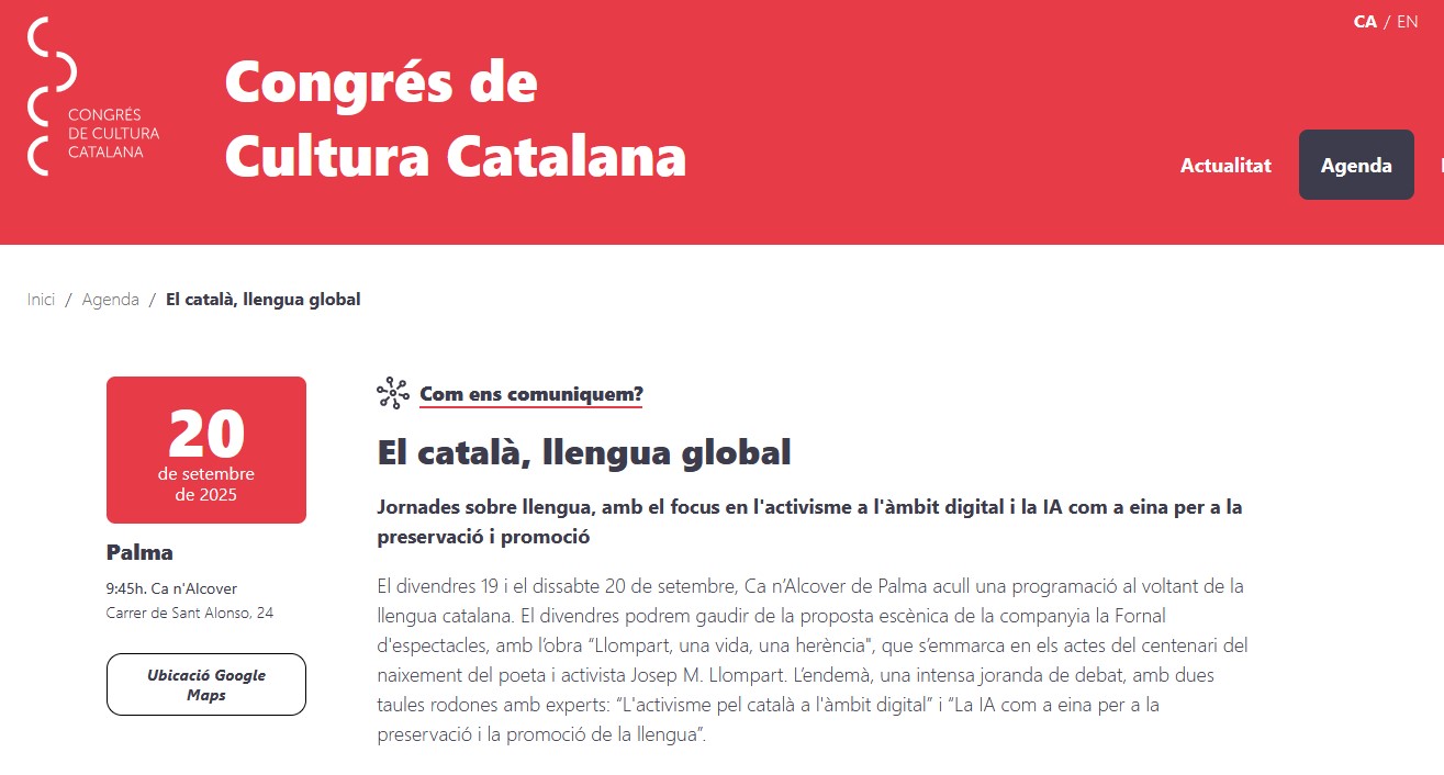 On Friday 19 and Saturday 20 September, the city of Palma de Mallorca will host a program around the Catalan language, as part of the activities of the Catalan Culture Congress. The Aina Project will be present with the help of researcher Maite Melero, who will participate in the round table La IA com a eina per a la preservació i la promoció de la llengua.